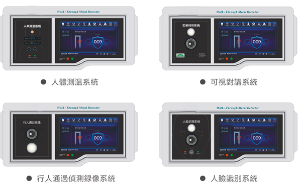 為了滿足用戶的更多需求, 該設(shè)備繼承了更多人性化功能, 以便于用戶選配, 如: 人體測溫系統(tǒng)、可視對講系統(tǒng)、行人通過偵測錄像系統(tǒng)、人臉識別系統(tǒng)等, 更多功能可按要求開發(fā)。